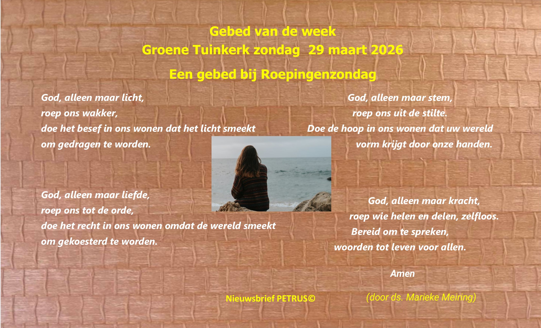 Op zondag 26 april is er een gezamenlijke dienst in Kerk aan de Maas in Bolnes. N.B. aanvang: 09:30 uur. Er is geen dienst in de Goene Tuinkerk. Gebedstekst, 26 april.
