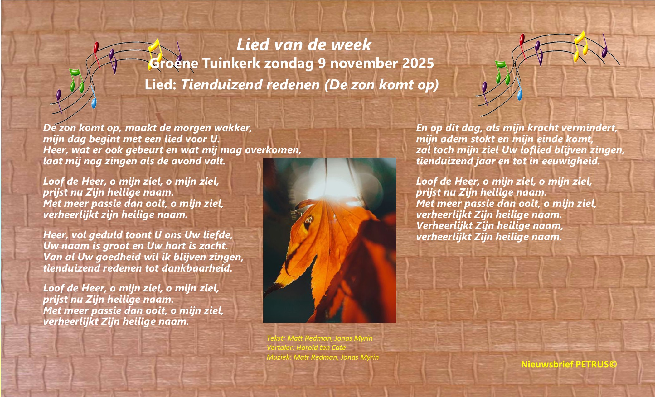Liturgie, 9 november. Lied van de week. Liturgische schikking Dankdag