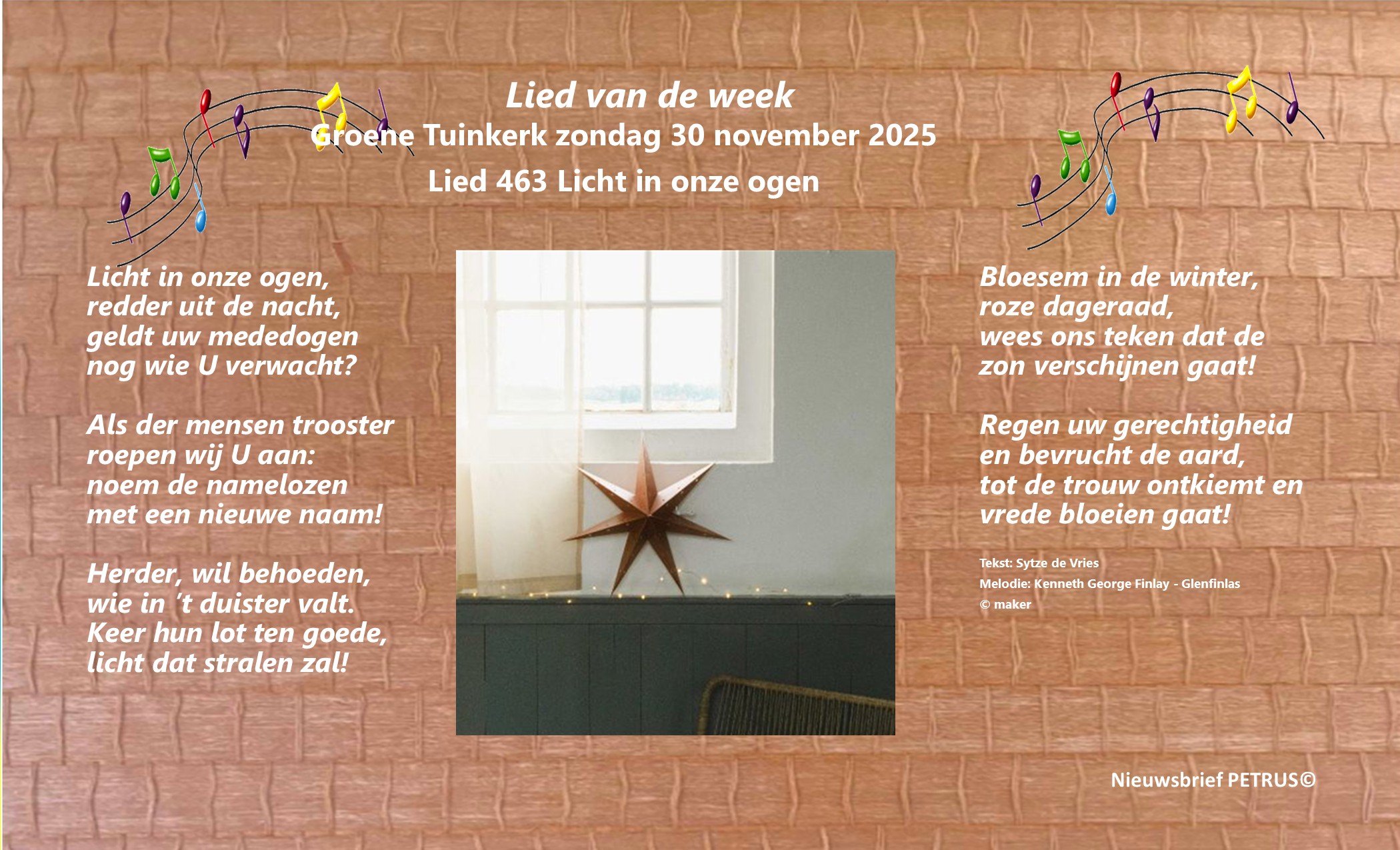 * Laatste dienst van ons koor "de Zaaiers" op Herdenkinkszondag. * Dienst met kwartet op 14 december. Lees meer. ![]() |