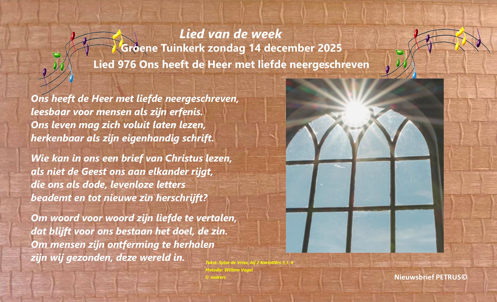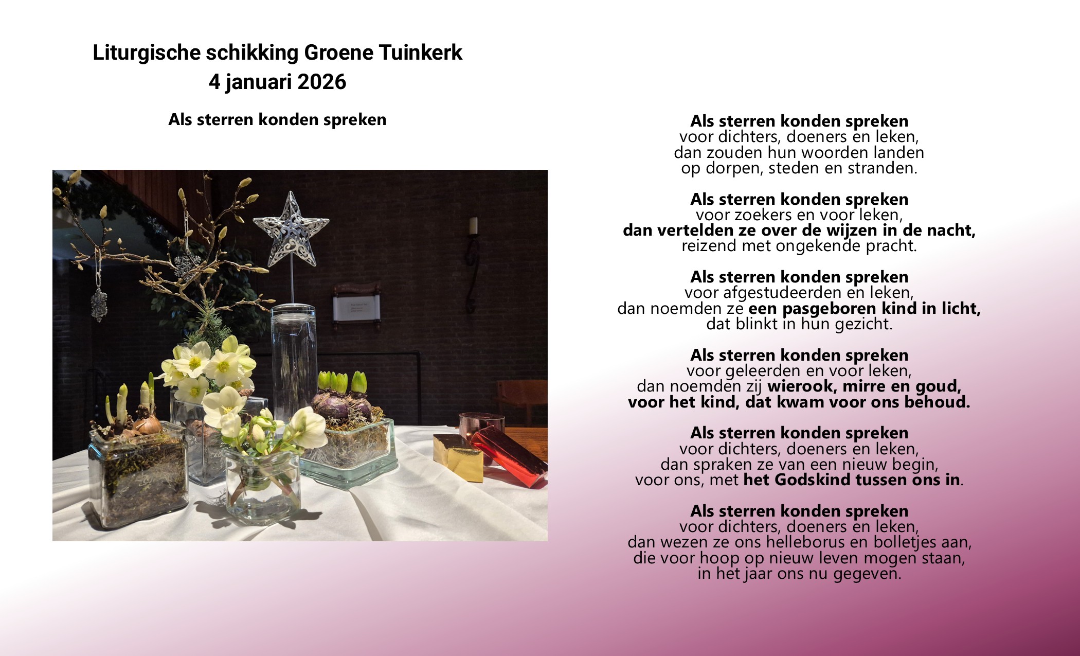 Liturgie, 28 december Liturgische schikking, 4 januari Lied van de week Video, lied van de week